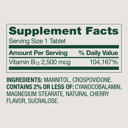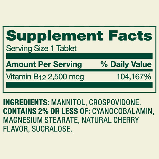 B12 | 2500mcg | 120 Tabletas | Sabor Cereza